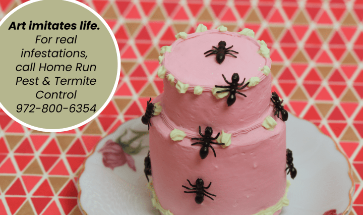 This sweet little two-tiered cake is serving looks in Food Fight: Reheated at the Lewisville Grand Theater. It’s my first time working with plaster of Paris and clay — because apparently I thought cake wasn’t challenging enough. Continue reading Frosted & Infested: A Sweet Installation with a Sting