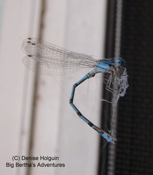 One day when I returned home I spotted a dragonfly caught in the web. For all the garden spiders I’ve had, I have never noticed a dragonfly in a spider’s web before. I prefer grub worms get mysteriously caught in the web—not harmless and interesting looking dragonflies.