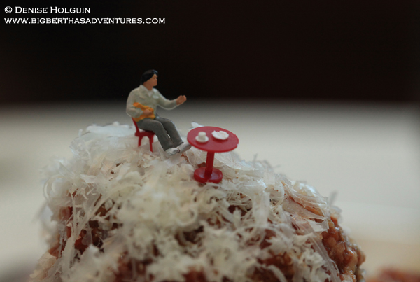 But I couldn’t bear to take a bite without adding a miniature to the top of the giant meatball. I’ve wanted to do this at restaurants (and on occasion I have) but having the freedom to do this from the comfort of home makes it a lot easier.