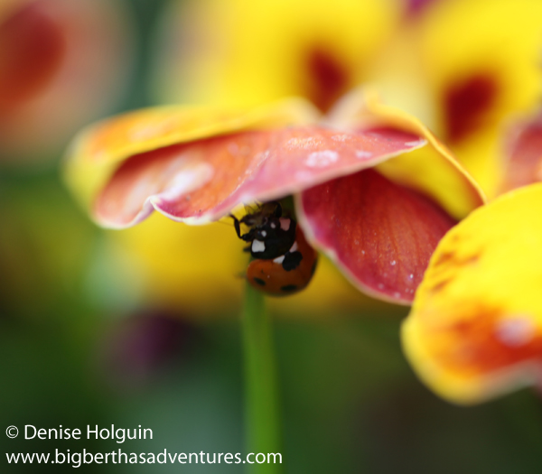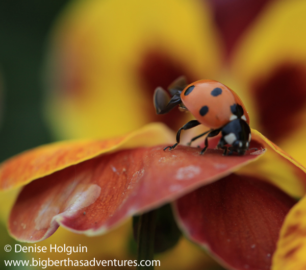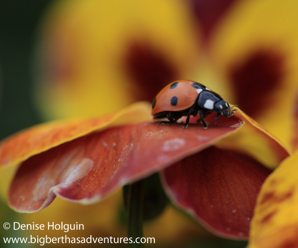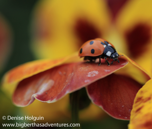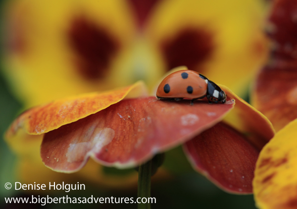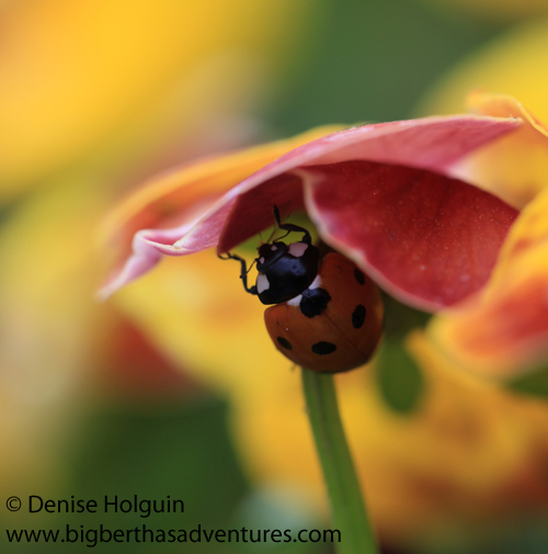 Notes:  Like the ladybug, you have to stalk your prey.  Or in more polite terms, as a nature photographer, you have to observe your surroundings carefully, quietly, patiently… and then snap that camera trigger to capture the moment.  In these instances you can’t have too many shots.  They won’t all turn out – so take as many as you can before the opportunity is gone.  That little ladybug devoured the winged insect the way I drink a Frappuccino!