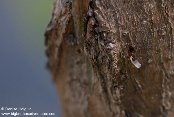 My subject was a fast moving target with a larvae. I only managed to take 4 shots of the ant before it got completely out of view. 2 of the 4 shots turned out. Take a look and enjoy!