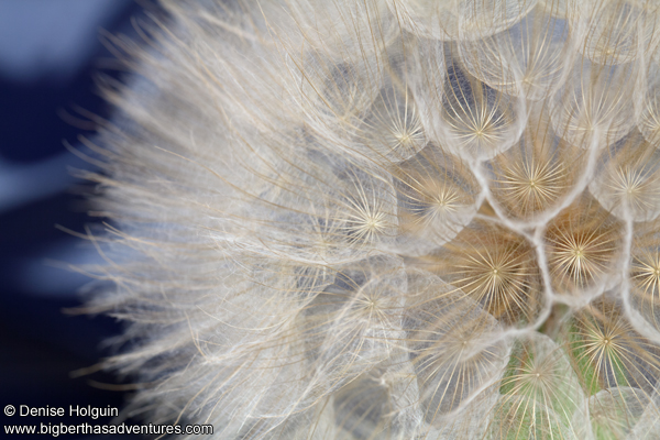 I did a search and this isn’t a dandelion—it has a more interesting name… it’s a Salsify. According to some websites, the root can be eaten— though I’m not signing up for that experience! I may plant some of the seeds in a pot to see what happens.