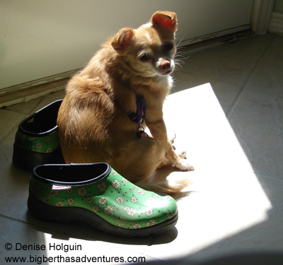 She was trained to do her business outside – but she would often forget or get distracted by anything and everything while outside.  Her own shadow could spook her.  Squirrels would taunt her but she’d bark to show them she was in charge.  She enjoyed sunbathing outdoors and even found ways to sunbathe indoors.  The morning sun would shine through the window and she’d strategically position herself in the sun.  She’d move to follow the little patch of sunlight as the day advanced.
