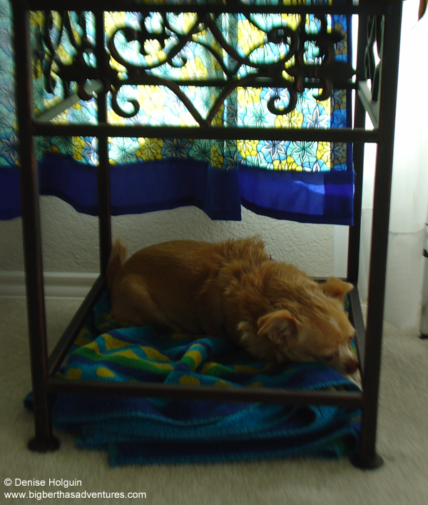 One of the first treats I bought Kibbles was at a fancy dog boutique in Monterey, CA.  It was shaped like a waffle and had some sort of ‘syrup’ on it.  Kibbles loved that treat.  On another trip we found a blanket with a dog head on one corner and the tail on the other.  These days you see these animal blankets everywhere — they are intended for children.  At the time, these blankets were novel– and expensive at a touristy gift shop in Nevada.  I saw the price and couldn’t justify spending the money.  We left the store.  But I couldn’t stop thinking about the blanket.  Kibbles needed it.  So we went back and I bought it for Kibbles.  (The blanket has been featured in several photos already.  It’s the brown dog)