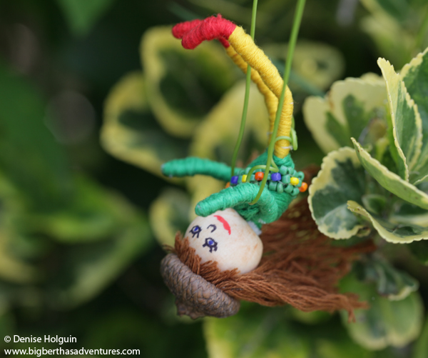 Harriet enjoys spending time on a passion flower vine swing in the garden.
