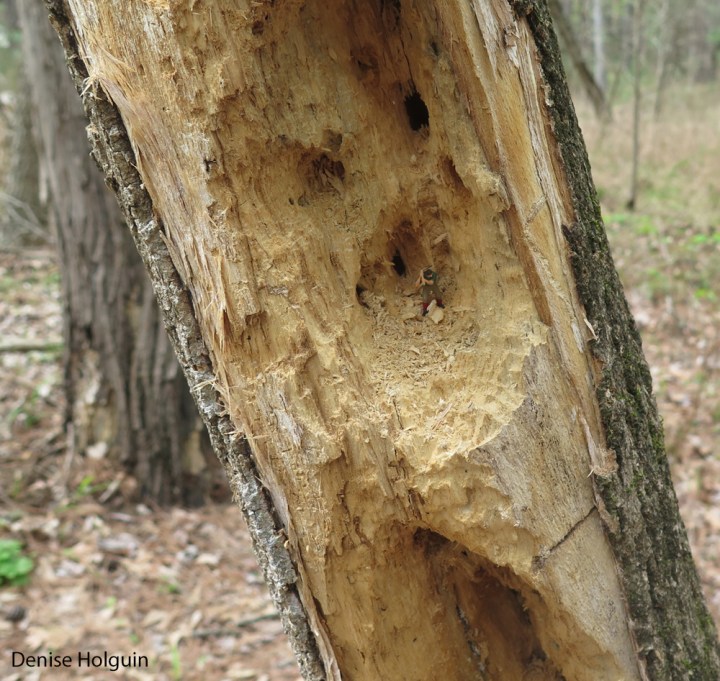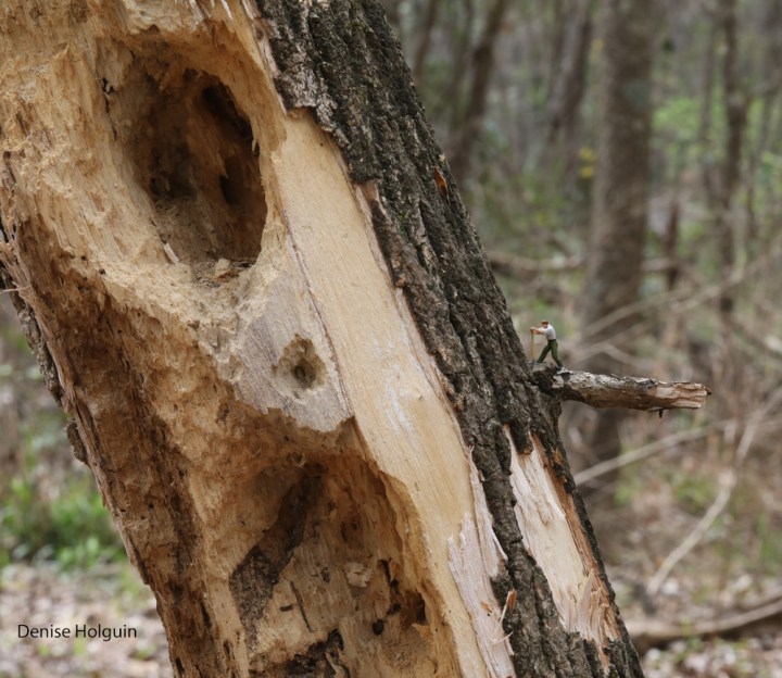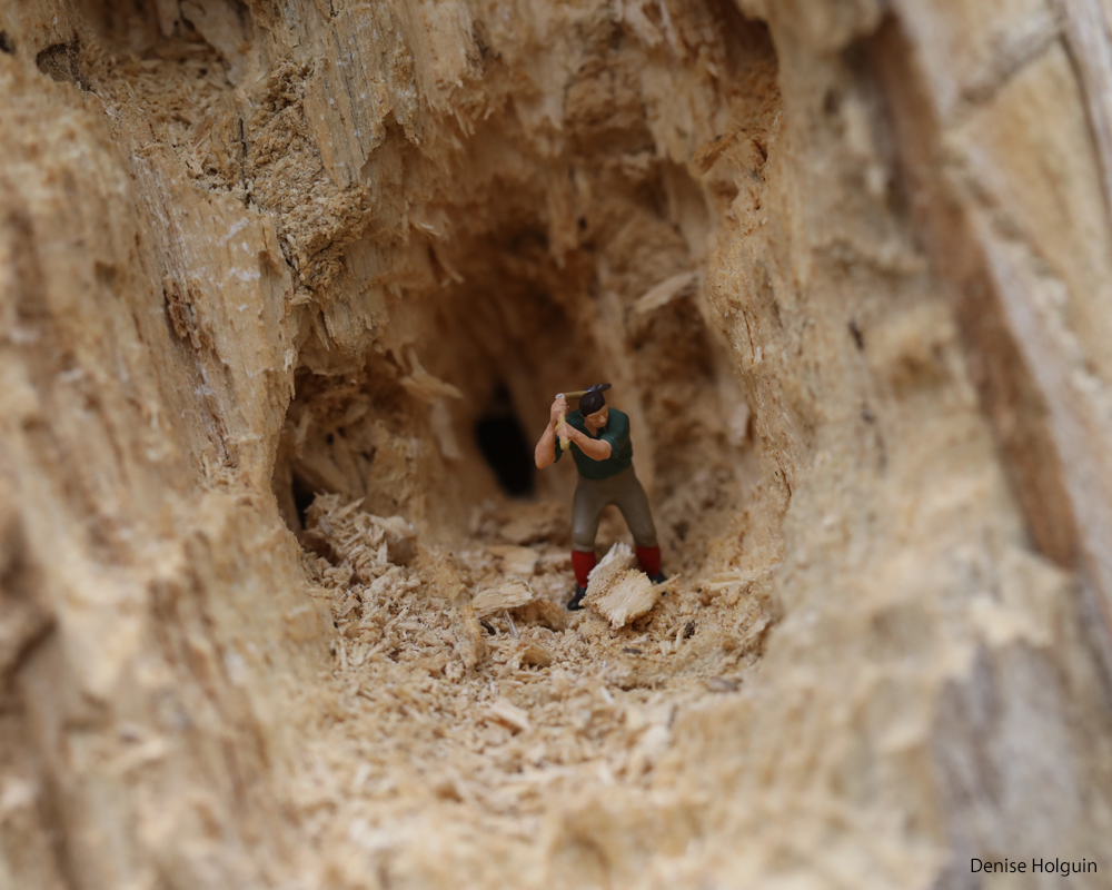I spotted a small but mighty team of lumberjacks at the park. Harrison (shown below) has been chipping away at this tree for months.