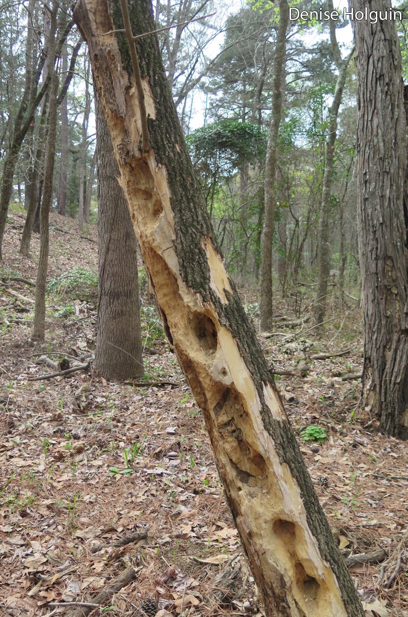 Notes: The guide on the trail explained the damage on the tree is the result of a woodpecker. Wow!