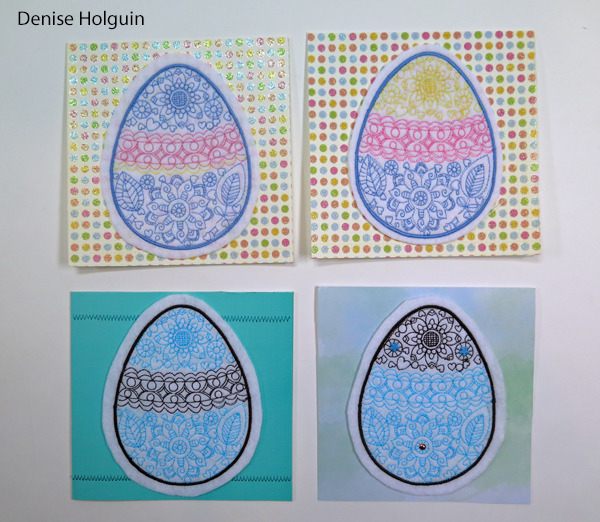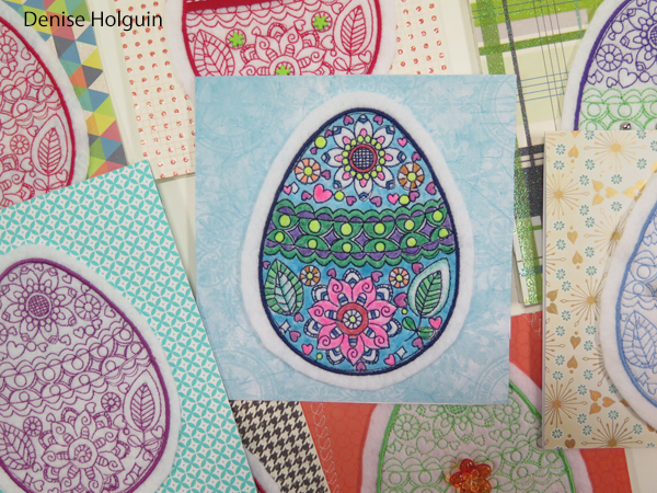 I started on Sunday, April 2nd: I machine embroidered 15 Easter eggs on felt. I proved the concept could be done.