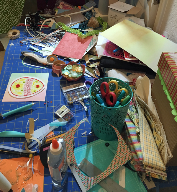 A glimpse of the aftermath when the final egg was glued to card stock. I made a mess of multiple rooms…