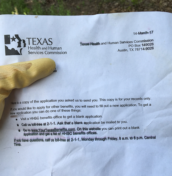 Then there was a discarded letter from the Health and Human Services Commission regarding benefits….