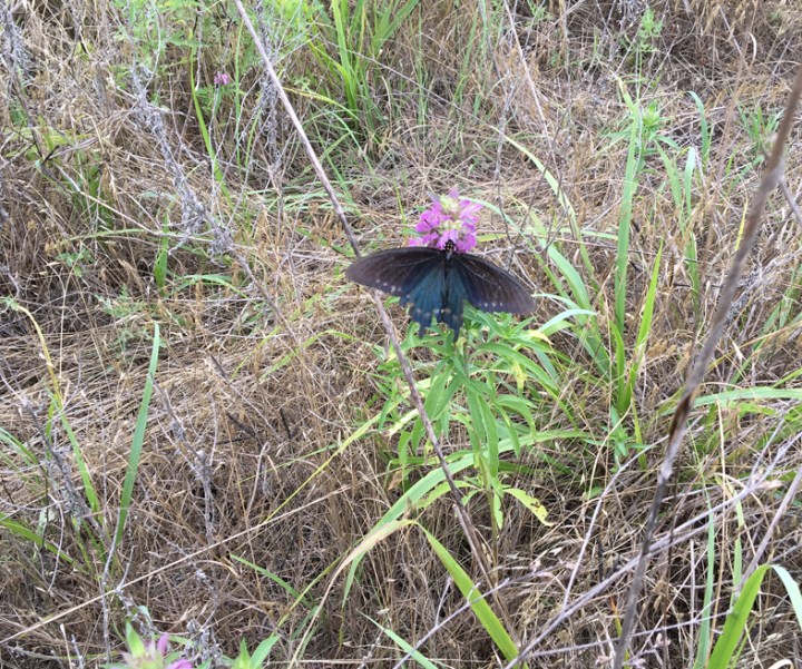 We worked as a team – I went inside the brush (I’m small and nimble!). I would grab the trash and pile it in one central location for Tore to collect in our trash bag. I acted swiftly and carefully. There are lots of spider webs, ticks (I don’t like to discuss that topic) and most likely snakes (again, I don’t like to discuss that topic) and poison ivy (another topic I don’t discuss). I do take precautions – I am sprayed down with tick repellent and essential oils. Plus I wear boots and a hat. I also periodically throw in a prayer or ten for good measure.
