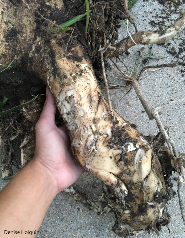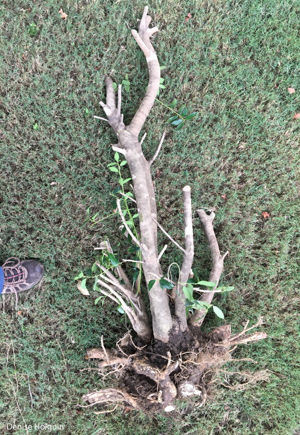 I took a close-up of the last root shown in the group photo. It was dug up several weeks after the bush was removed. It’s still green.