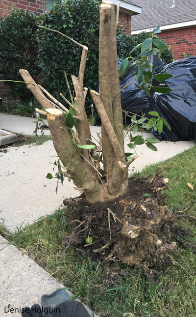 My resolve weakens. Maybe I don’t have what it takes. I wish I had a Mack truck to pull this bush out of the ground. This is exhausting work. But I will succeed.