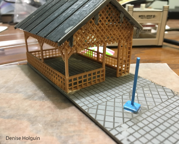 The photo below shows a mistake I made during construction. I was so engrossed in staining the roof, I forgot to double check the roof pitch. But now I have a pre-fabricated roof to sell in my HO scale Building Supply Store.
