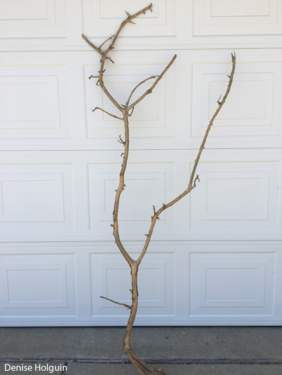 I spray painted the branch with gold paint. Then the branch lived in my garage for months.