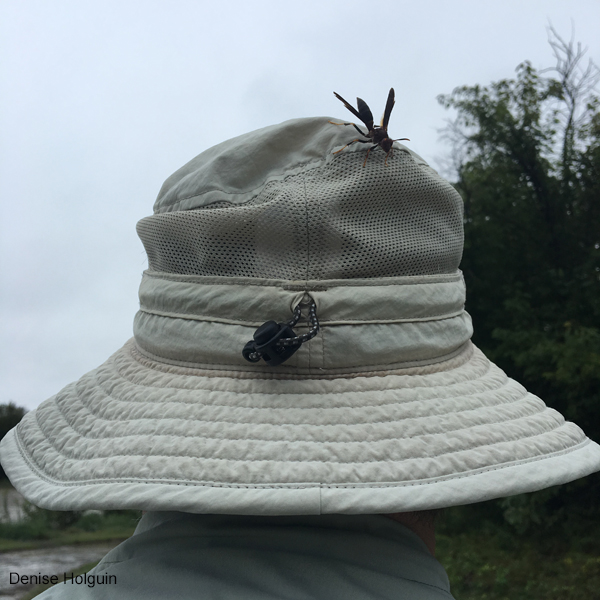 Our winged friends were also affected. It was so wet wasps were looking for dry land. Or in this case, a hat.