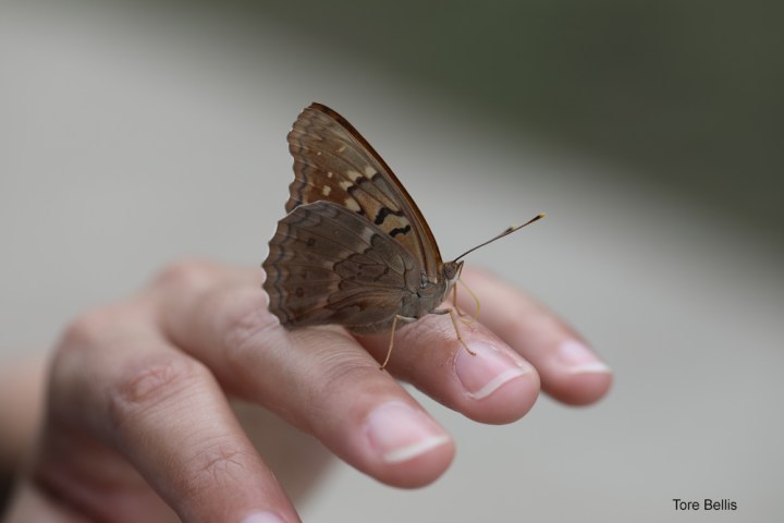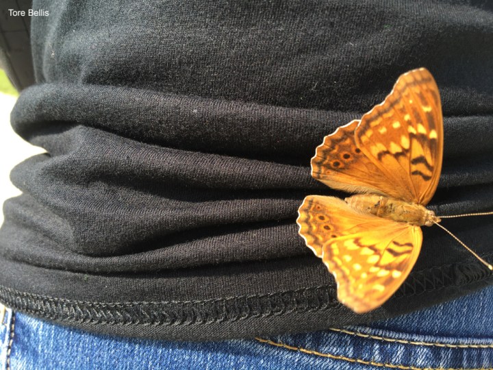 Tore walked behind me— ready to report when it flew away. But it didn’t. I still had a butterfly on my back.