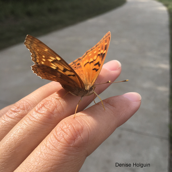 The time stamp on my photos is fascinating. The first photo I took with my cell phone was at 3:18 pm. The last photo I took was at 4:06 pm. Butter was on me for at least 48 minutes at the park. (Tore took photos on his phone, I don’t have the time stamp. The butterfly was likely on me for a few more minutes).
