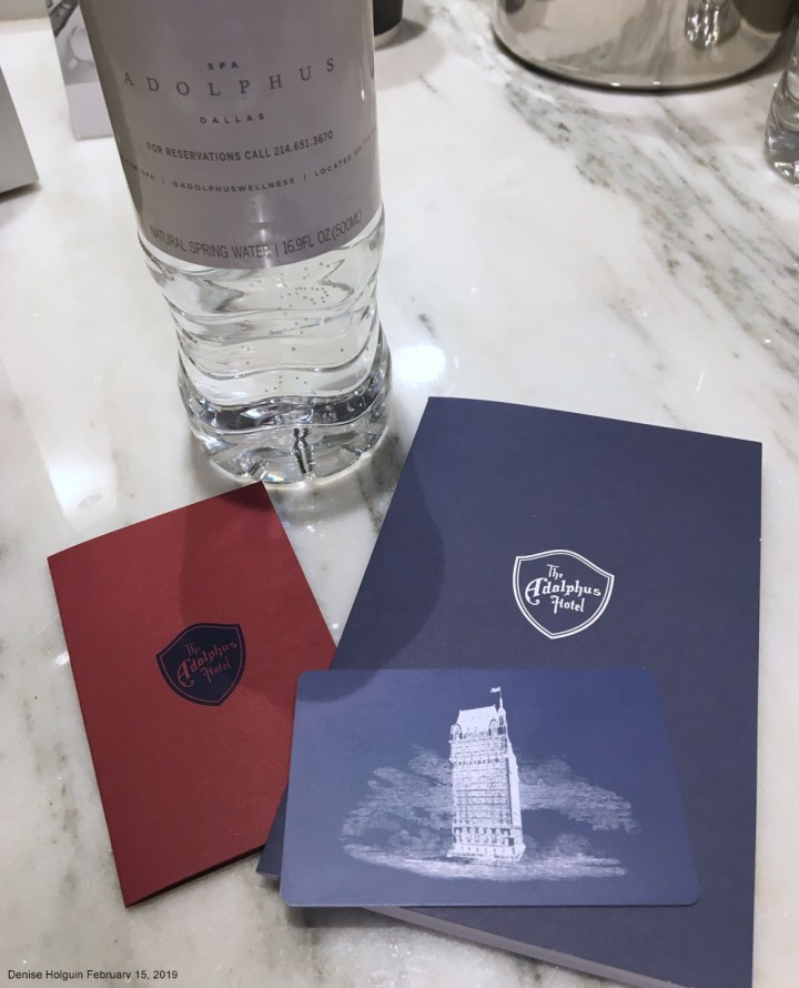 When we checked in to The Adolphus we were offered bottled water. I remember a much lower-end hotel I checked in to during Christmas attempted this same technique but the label was a little homemade and I didn’t drink the water. I most certainly drank my Adolphus water.