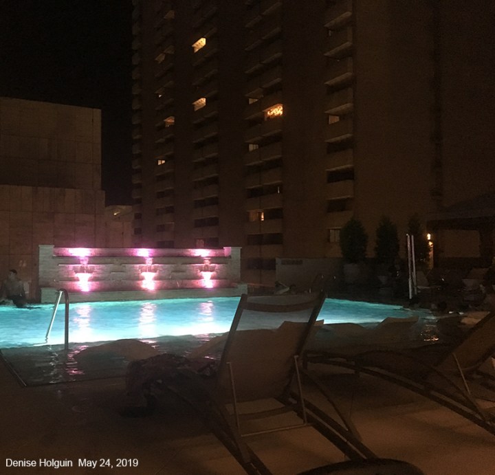 I walked giddily to the rooftop pool at The Adolphus. Depending on the point of view— we were overdressed. Tore was in his tux and I was in my mod dress and boots— we had finished our meal from The French Room. We danced in The Grand Ballroom. Now it was time for rooftop dancing.