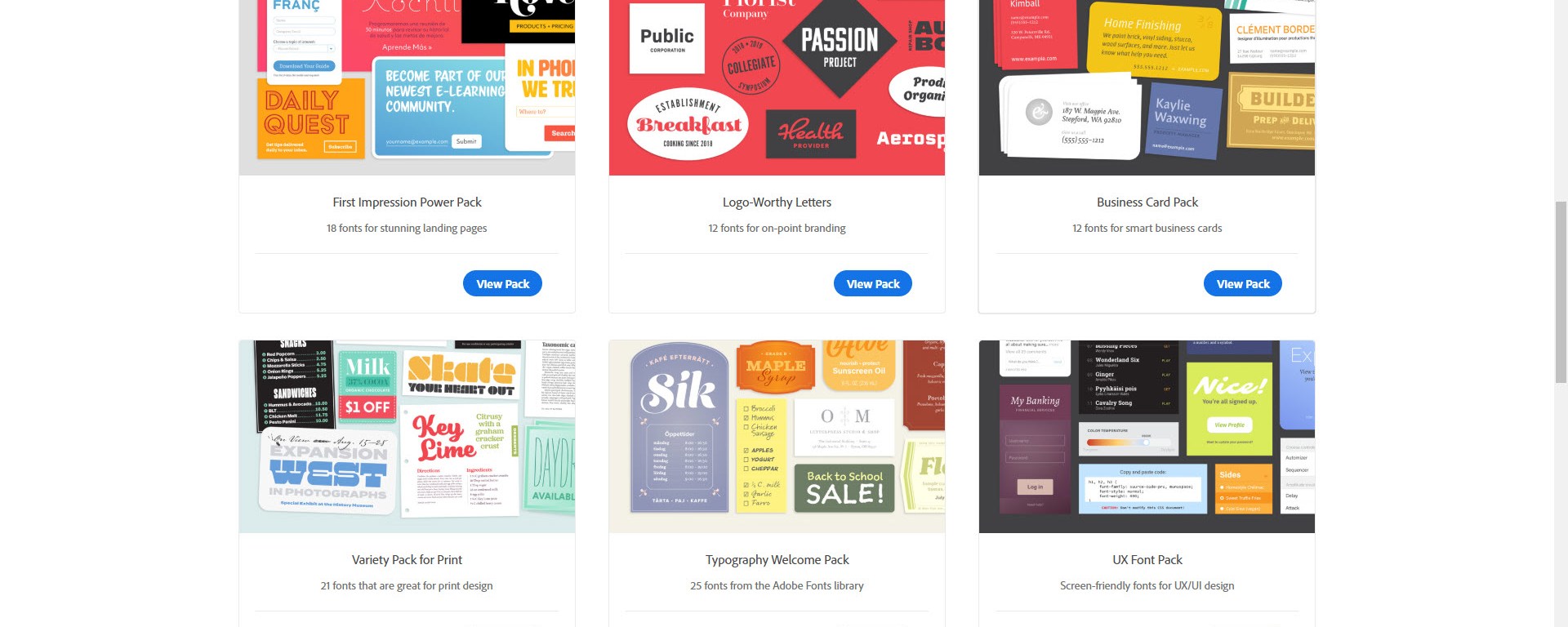 I’ve been learning how to use Adobe Illustrator and discovered free templates with the font packs. I have no vision so the templates were especially handy to see what could be done with the fonts. Here’s a glimpse of the assortment of templates from the Adobe website.