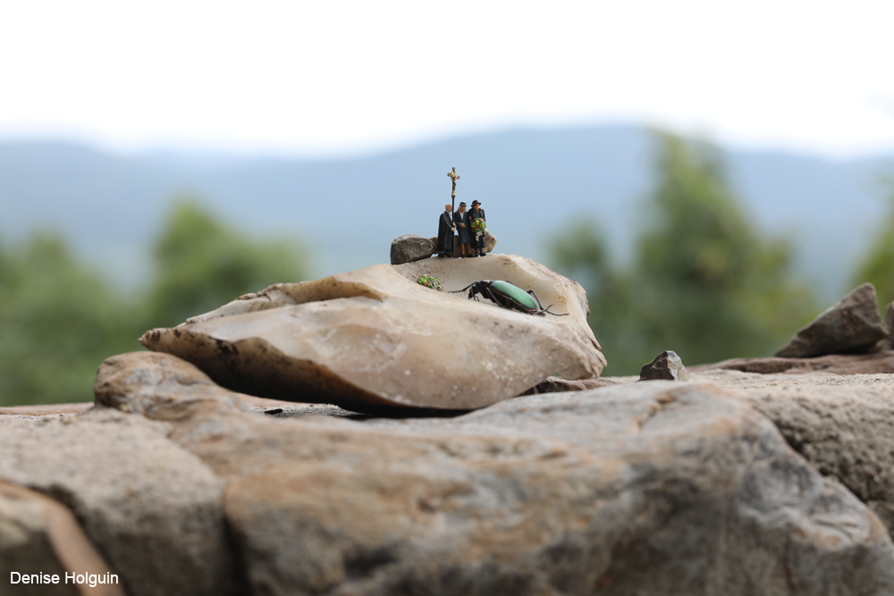 I happened to come across Jolene, the jewel beetle, during a hike in Arkansas. I placed her carefully on a leaf with the plan to have a funeral ceremony. My friend Tore handed me a larger rock to carry the beetle. He didn’t realize my plan of carrying the beetle (and now the rock) all the way back to the beginning of our trail.