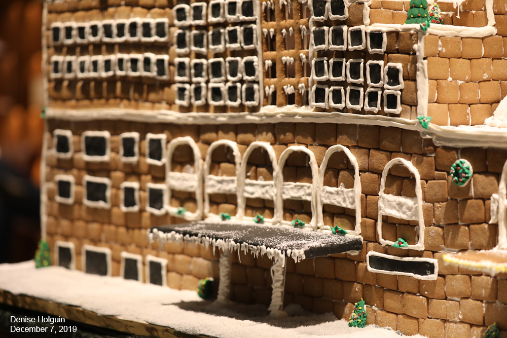 I took in the familiar scent of the hotel as we walked in. Inside we spotted the giant gingerbread Adolphus. It smelled delicious and it had all the familiar features of my beloved hotel.