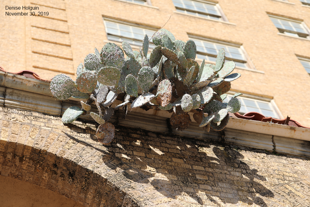 As we left the grounds, I spotted this piece of cactus. I suspect it fell from the the cactus growing on the building. For a split second I considered taking it with me as a souvenir but then I came to my senses. 🙂