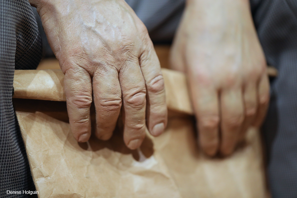 He held a brown paper sack. Did it contain lunch or all his worldly possessions? We may never know.