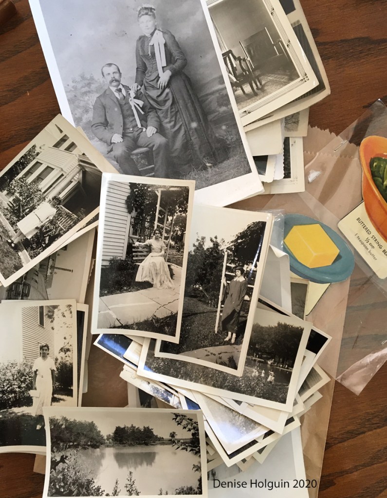I deliberated for a few days on the photo and asked the advice of friends. Do I cut up the photo? Do I make a copy of the photo and preserve the original? Do I use the original photo but don’t cut it? The photo was part of a $12 grab bag at an antique store. By the time it ended up here, it was ready to be re-imagined into something new.