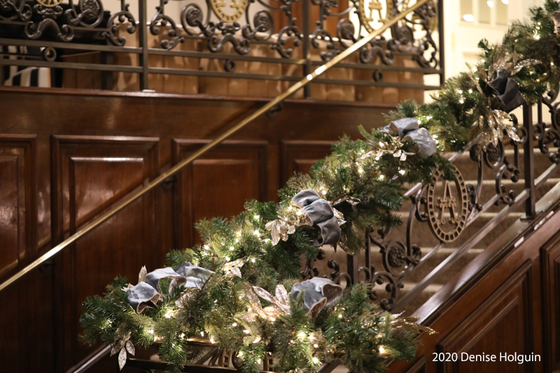 I have photographed this area before and showcased it in previous posts. But it’s always fun to see it with Christmas garland and lights.
