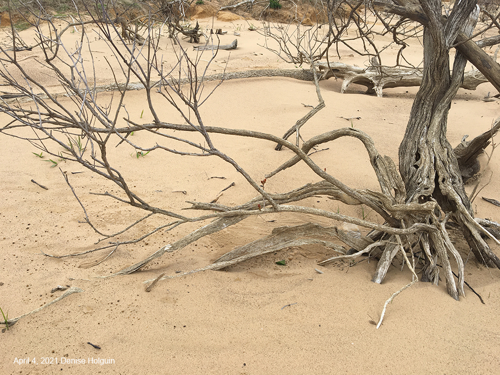 Fast forward to April 3, 2021. It is early spring and the water has receded like we’ve never seen before and the boat is still there!