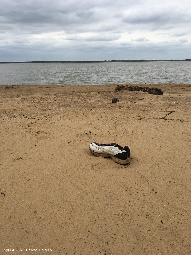 We took the opportunity to walk along the shore. (The boat is near the tree in the middle of the photo.) Normally this area is entirely under water. Aside from the boat, I hoped to find other interesting items washed up.