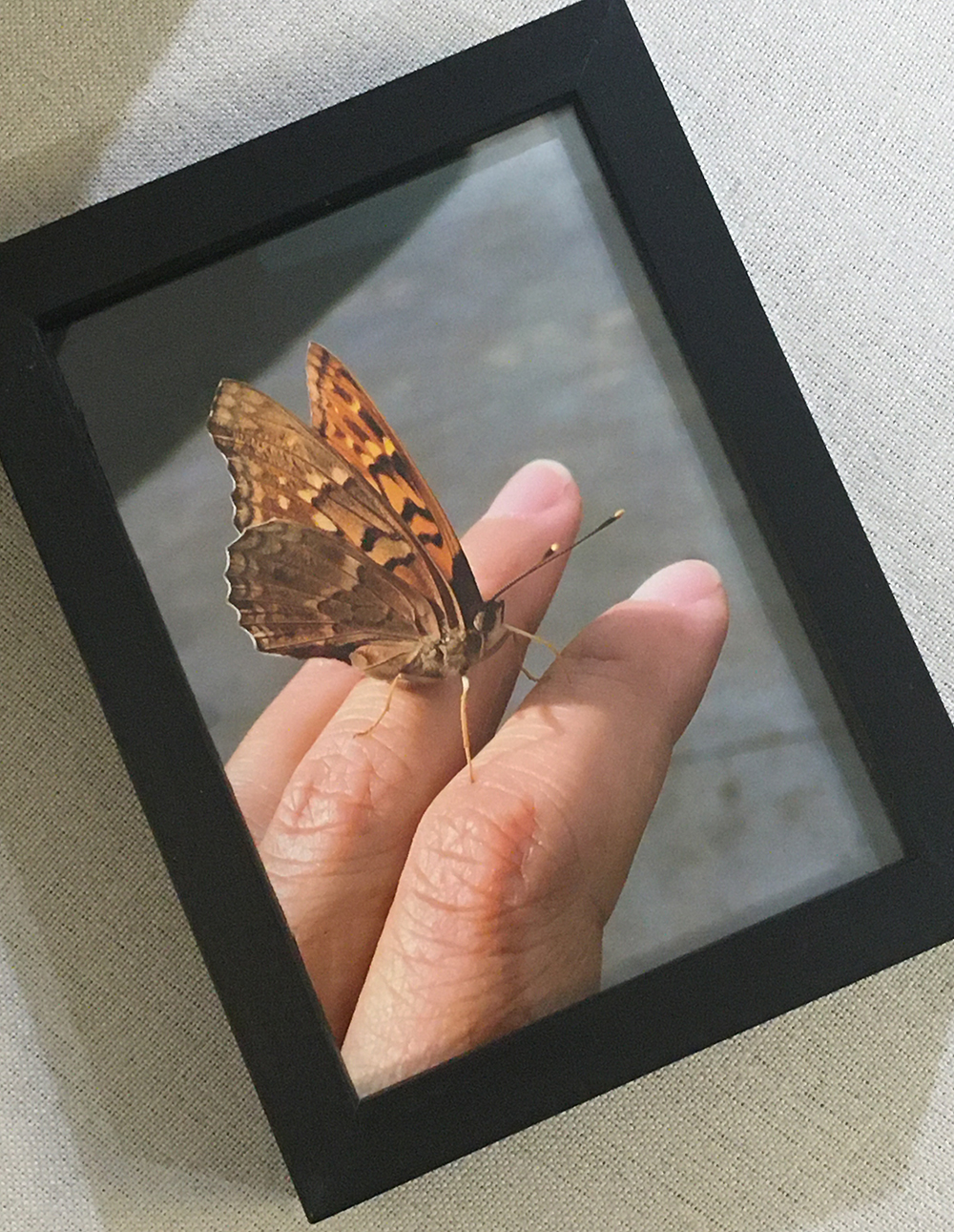 A few years ago I went to the park in search of subjects to photograph. A butterfly landed on my back side. Then it moved to my hand. “Butter” and I walked around the park for a good distance, in fact, it was long enough for me to play “Build me up buttercup”. It was the most unusual experience to have this delicate creature on my hand. I snapped as many photos as I could and so did my friend Tore. In total, she was on me for 48 minutes.