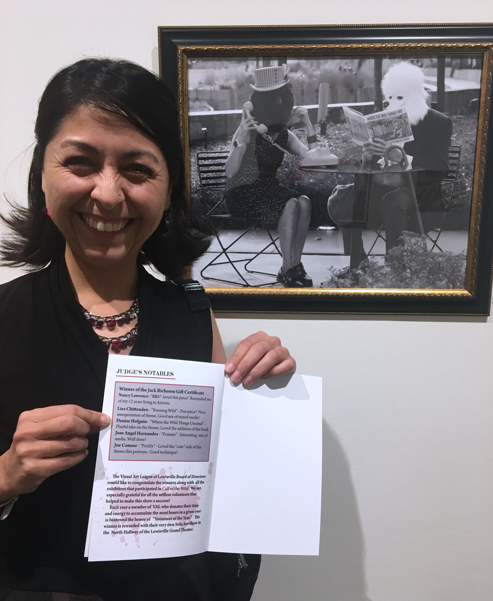 Make plans to visit our art in person. They are each a labor of love and a whole lot of crazy. You can also see other interpretations of the same themes by other members of the Visual Art League of Lewisville. Oil, acrylics, charcoal, collage, encaustic and even bones are on display.