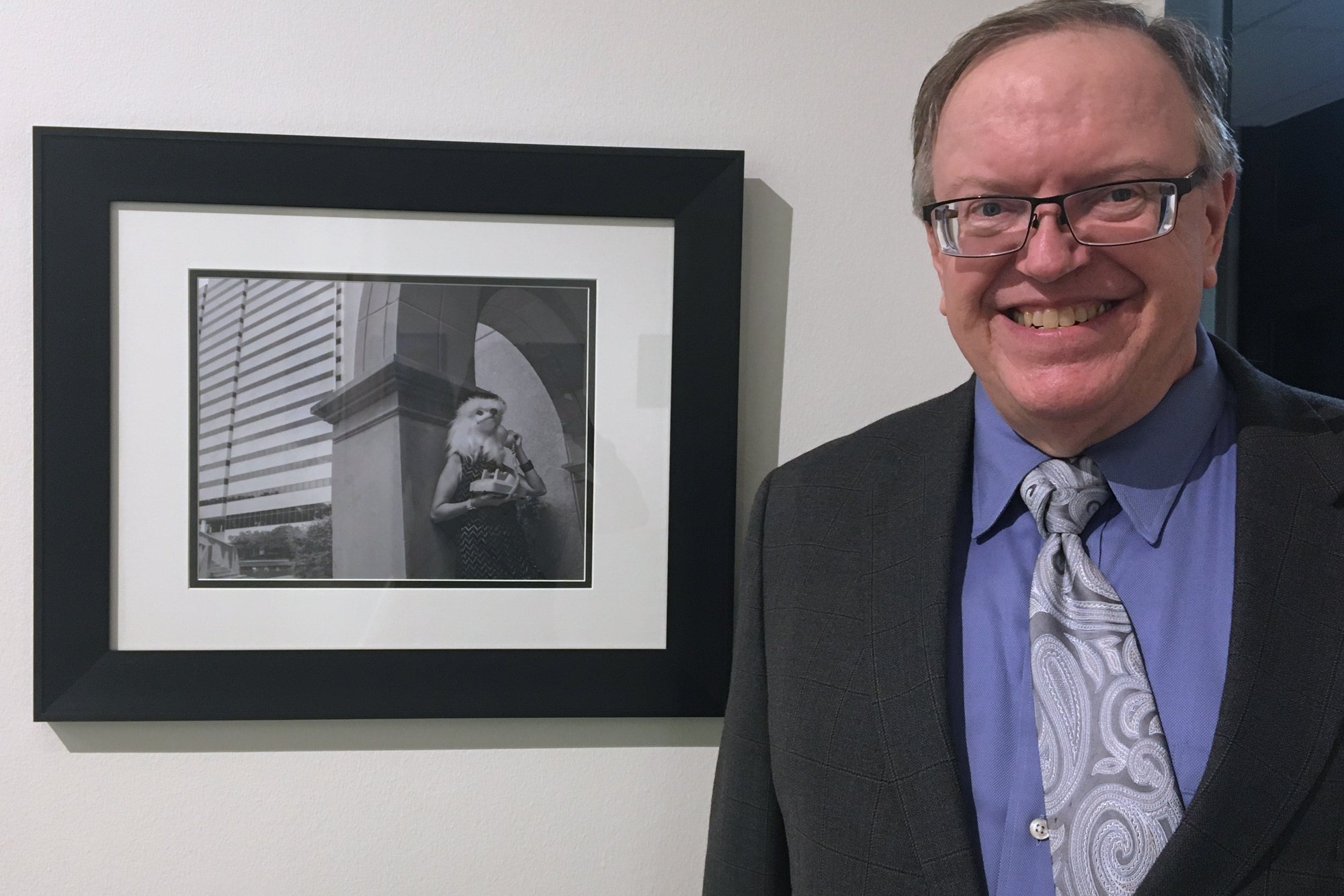 Notes: Tore took this photo in historic downtown Lewisville. The background is a mural on the side of a building. Bokeh can create very deceiving effects!