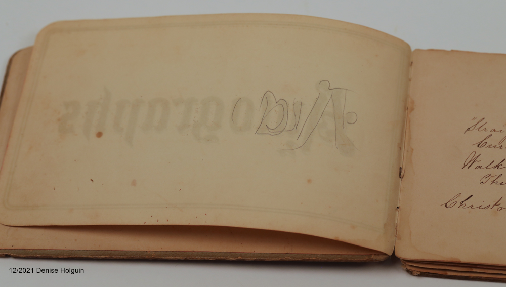 You can see the back of the printed “Autographs” page. Someone started outlining the word in pencil.