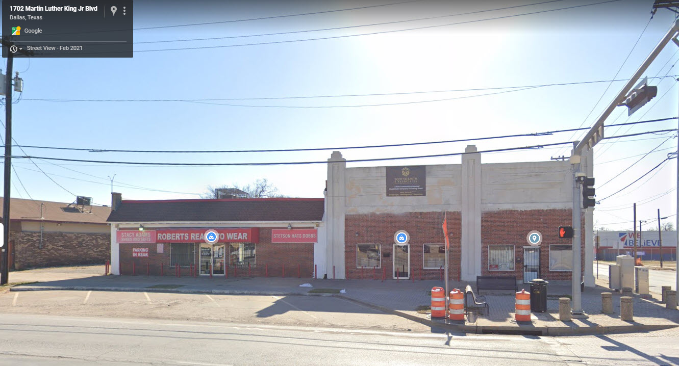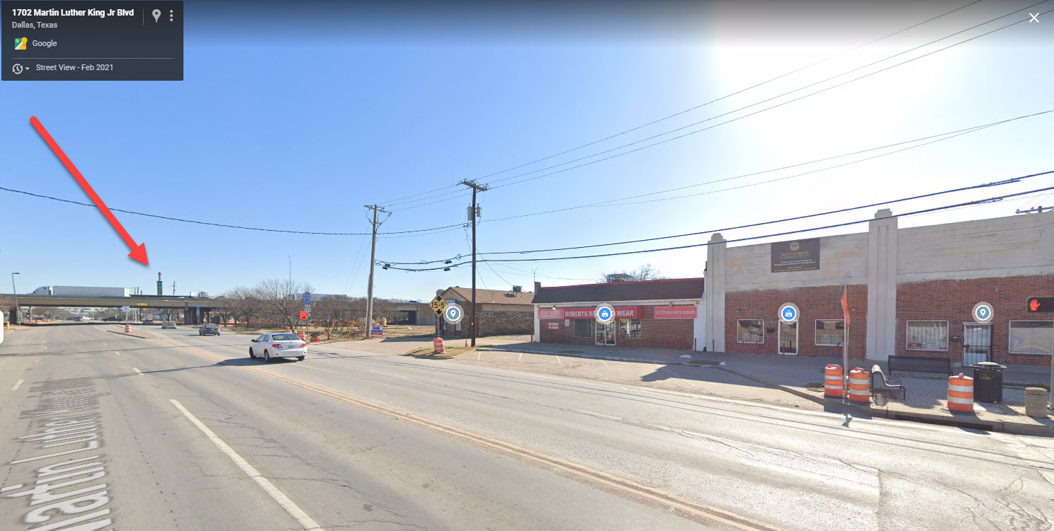 Here’s a broader view of the area using Google Maps.  You can see the tall vertical sign for the new Forest Theater in the background, located at 1914 Martin Luther King Jr. Blvd.