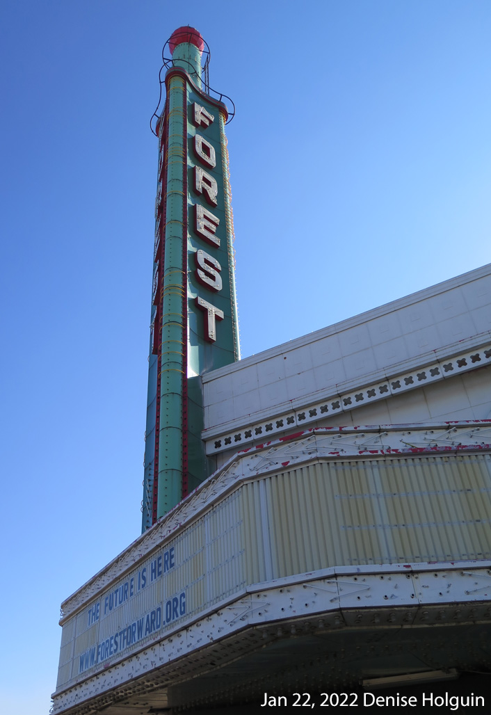 This is a Feb 2021 image of where the original Forest Theater was located, courtesy of Google Maps.