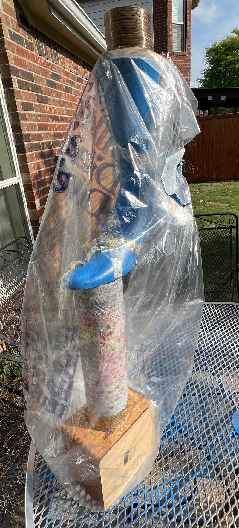 Mannequin foot: The foot is from Dillard’s of Collin Creek Mall in Plano. Dillard’s was closing and I snatched up quite a few mannequin parts. A few years later Collin Creek Mall was demolished. I have been holding the mannequin parts for just the right occasion.