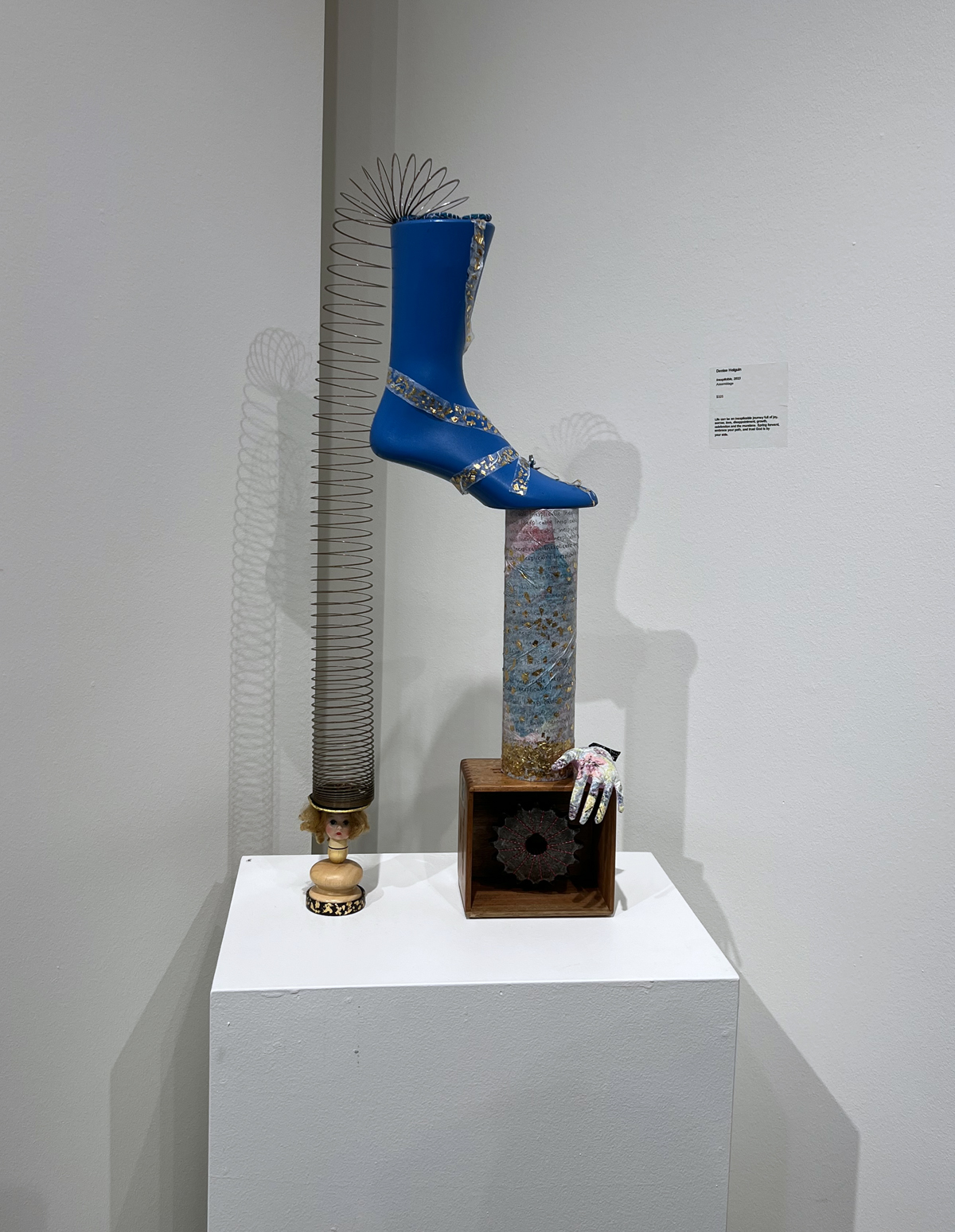 I assured the doll she’d be used for a future art piece. But the doll was very… persuasive. I realized she needed to be the star of the show by being outside of the cigar box and holding the slinky…. Obviously!