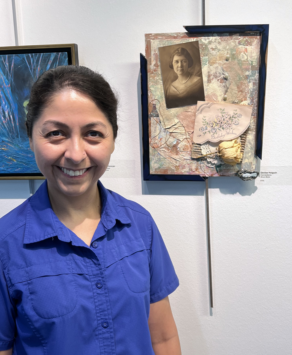 My friend Crystal Nelson, also a Visual Art League of Lewisville member, gifted me with the most extraordinary collection of vintage greeting cards (birthday, anniversary, holiday, etc). I find it difficult to use such special ephemera, but it felt right for this piece.
