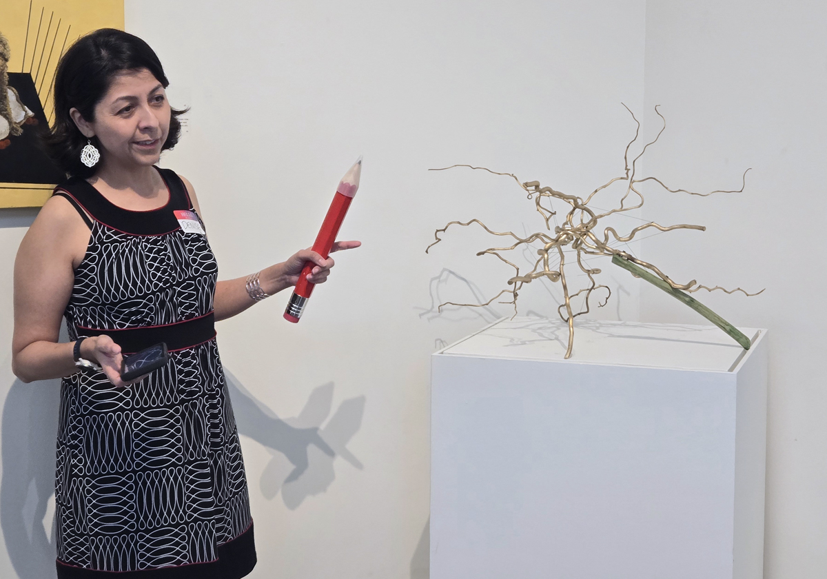 From the start, I viewed my art piece as performance art. It is meant to be handled. It is like the conch in Lord of the Flies. Or the giant pencil I pass around during my Conversations with Artists events at the Lewisville Grand Theater. Whoever has the conch / giant pencil or the “Family Dynamics” art piece in hand, has the floor to speak.