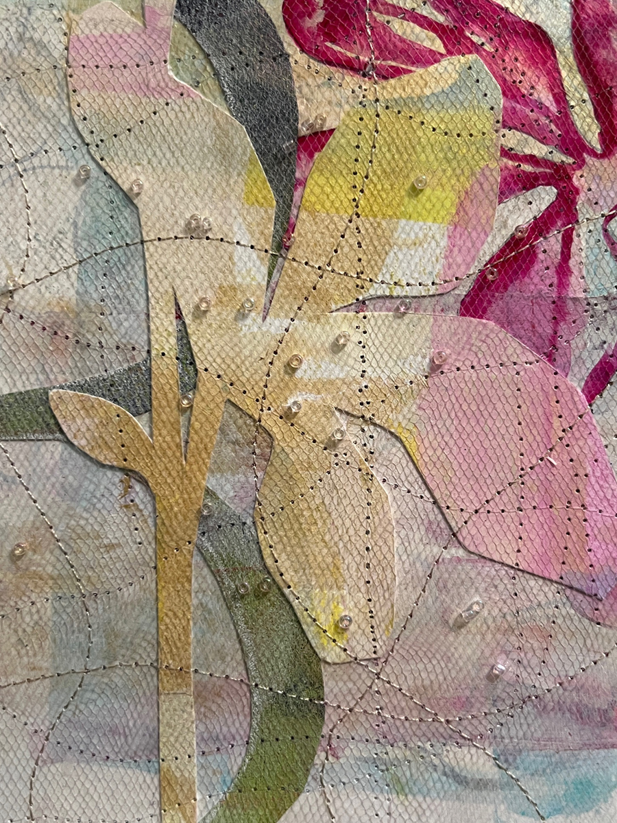 When I received the artwork back, I leaned on my experience of using the sewing machine to add texture and interest.