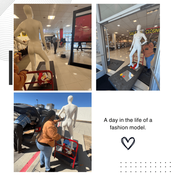 Macy’s Department store in Fairview was closing. Tore and I had to make multiple trips because it takes time for the mannequins to be available for purchase. And when they were it was a frenzy of excitement (at least for me).