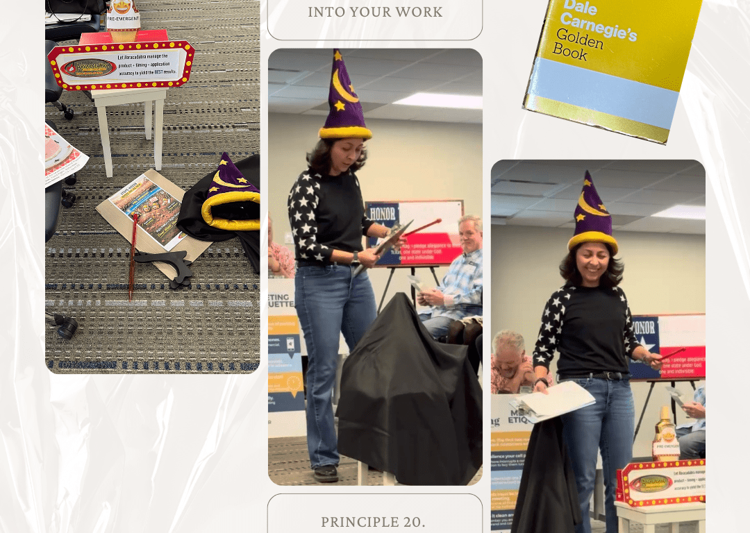 Fast forward to last Wednesday in the Dale Carnegie course I’m currently enrolled in. We were sitting there when our instructor, Russ, suddenly started performing a skit—for floor cleaner.