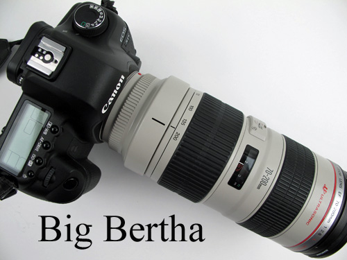 I took the camera on her first trip to Europe a few years ago. Hauling the camera around my neck with the heavy telephoto lens inspired me to name the camera, “Big Bertha.” Big Bertha and I get a lot of stares and curious looks, which I must admit I enjoy.